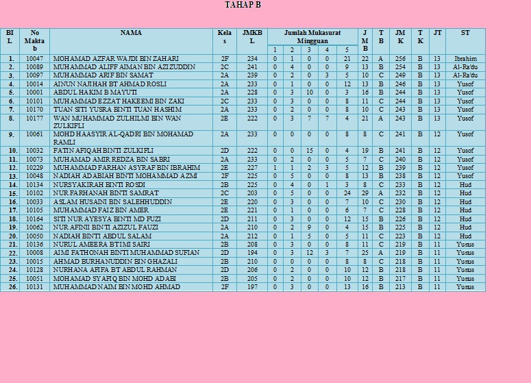 LAPORAN HAFAZAN AL-QURAN TINGKATAN DUA BULAN MAC 2011